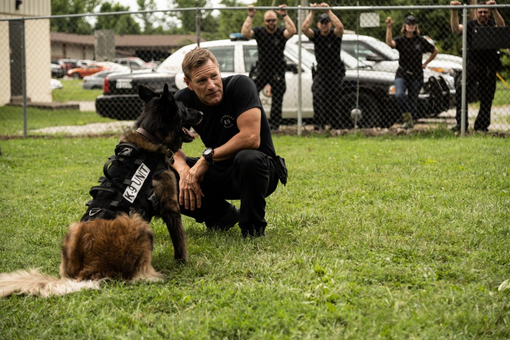 This crime thriller has just as much bite as it does bark. LAPD K-9 officer Jake Rosser (Aaron Eckhart, The Dark Knight) and his K-9 partner Ace battle it out on the streets of LA when they get into a shootout with local drug dealers and Ace is shot dead. In a moment of crisis, Jake tries to get an EMT to look at Ace and assaults him when he refuses, resulting in him taking leave from the force. Blocked by Internal Affairs, muzzled by his own superiors from finding the shooter’s identity, Jake resolves to go rogue and partners with “Socks”, a violent K-9 with titanium incisors and a mysterious past. Jake and Socks aim to uncover a vast conspiracy that has a chokehold on the city and take vengeance on those responsible. Also starring Stephen Lang (Avatar: The Way of Water), Nick Searcy (Justified), Penelope Mitchell (Star Trek: Picard)and Diego Tinoco (On My Block), Muzzle is directed by John Stalberg Jr. (Crypto) and written by Stalberg Jr. and Carlyle Eubank (The Signal).